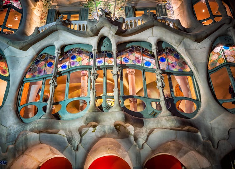 La obra de Antoni Gaudí (1852-1926) se desarrolló en plena revolución industrial, desde finales del siglo XIX hasta principios del siglo XX. Un periodo de intensos cambios sociales, culturales y políticos, en paralelo a un avance tecnológico que transformó el mundo. Gaudí revolucionó la arquitectura a través del uso de la tecnología y de los materiales. Por ejemplo, las curvaturas de los elementos que se asemejan al espinazo de un animal que se eleva por huecos imposibles en el interior de Casa Batlló.
