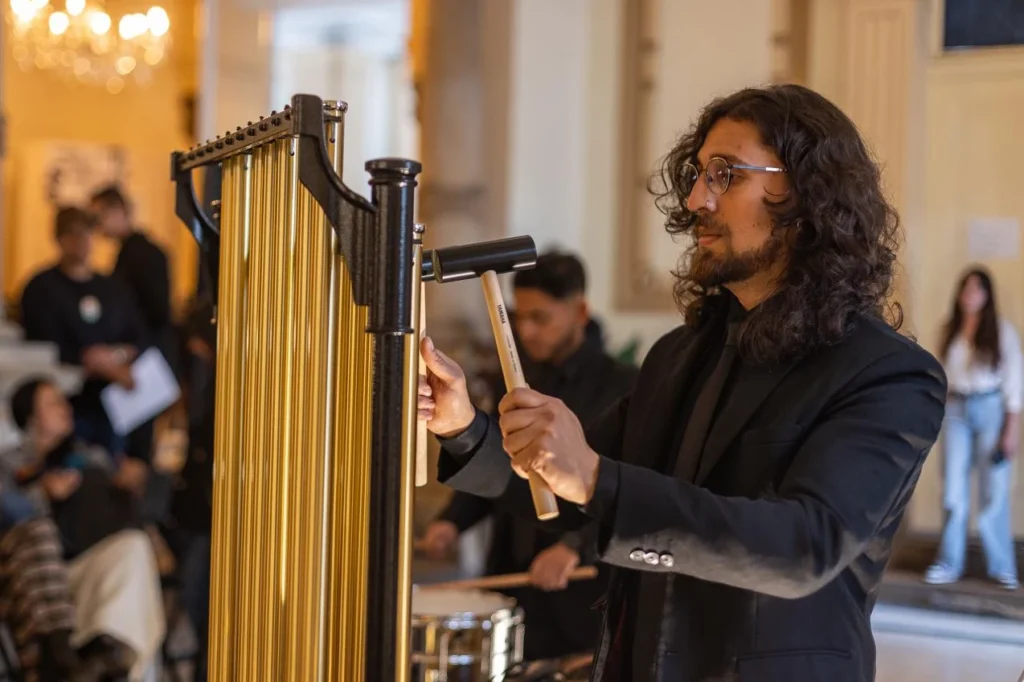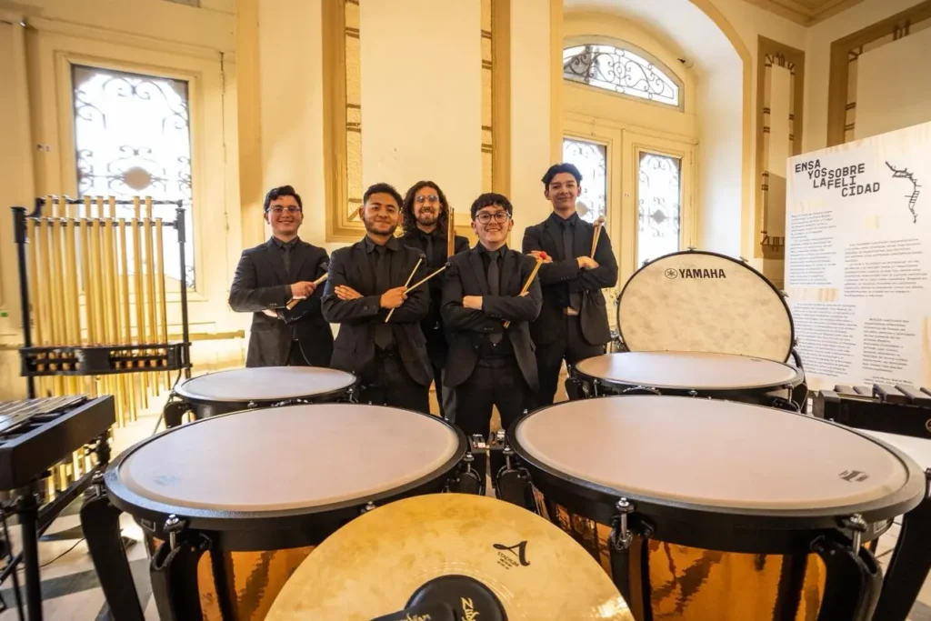 Las dotaciones incluyen instrumentos de alta gama como timbales sinfónicos, bombo sinfónico de concierto, platos de choque, redoblante sinfónico, glockenspiel, xilófono y campanas tubulares, con sus respectivos accesorios.