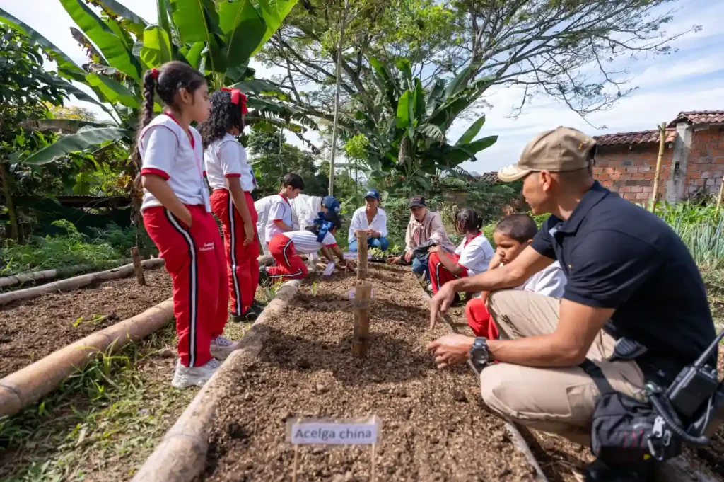 “Nos encontramos en la sede del Claret en Combia Baja integrando diferentes instituciones, como la Policía de Carabineros, dos instituciones educativas y la comunidad de mujeres de la vereda San Marino. Hoy estamos desarrollando prácticas de seguridad alimentaria, siembra y capacitaciones para que este conocimiento pueda replicarse en las casas y en otras instituciones”, señaló.