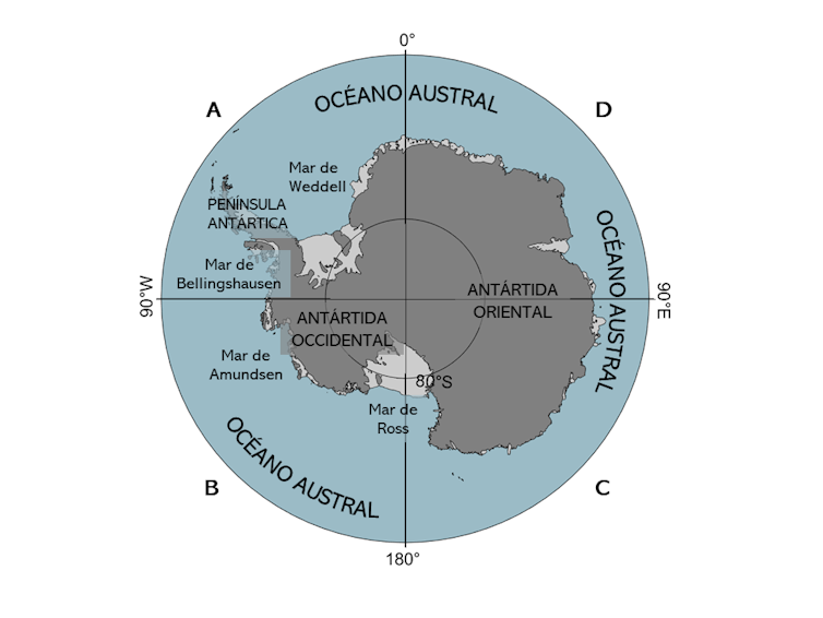 - A = 0-90 ºW (Bellingshausen/Mar de Weddell)