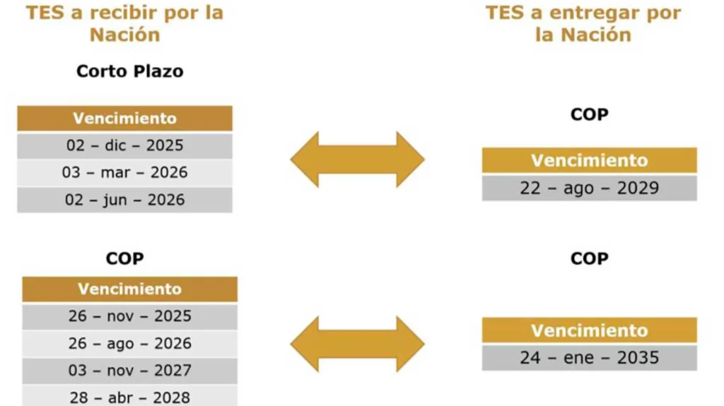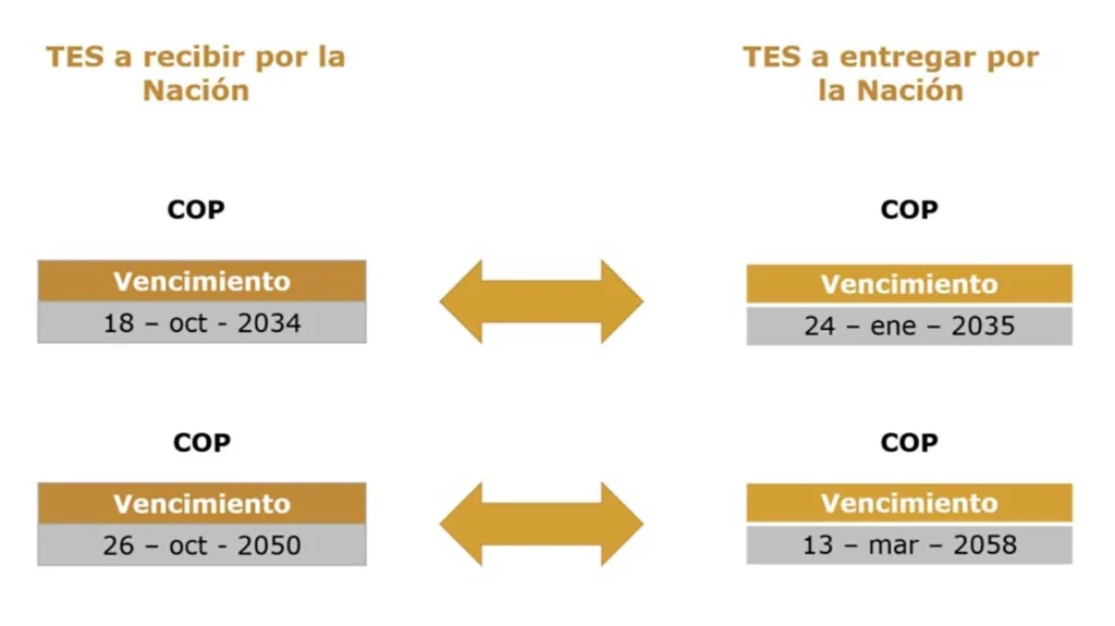 • La nación recibirá en intercambio Títulos de Corto Plazo (TCO) con vencimiento en 2025 y 2026, y en contraprestación entregará Títulos denominados en COP con vencimiento de 2029