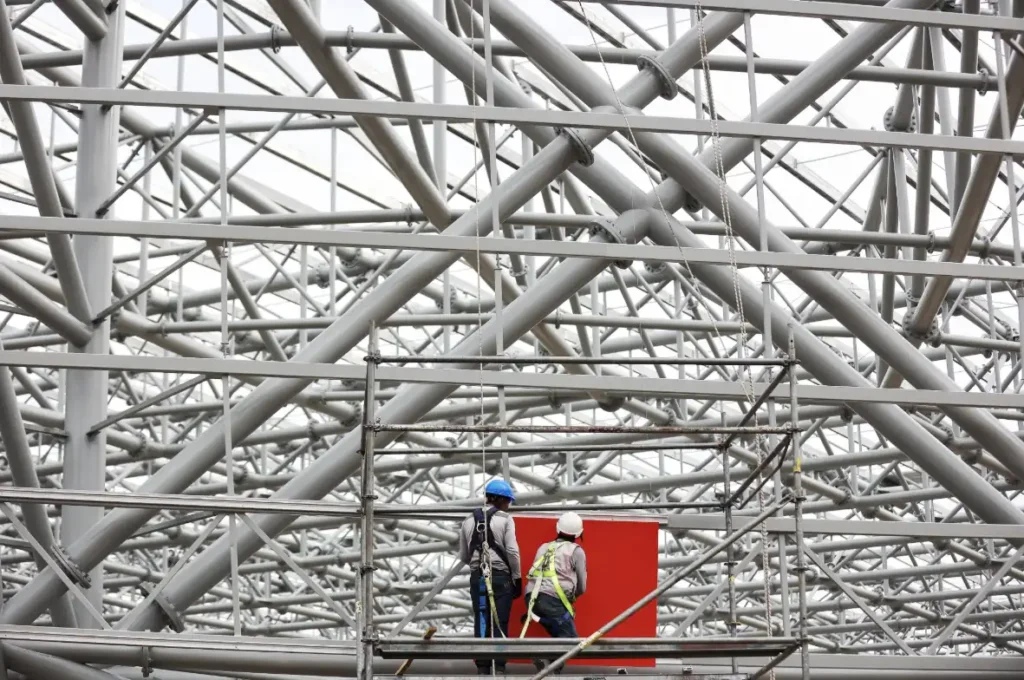 Actualmente, se desarrollan labores de pintura esmalte alquídico en la estructura metálica, además de la instalación de canaletas y tubería eléctrica interior. De manera paralela, se ejecutan los trabajos correspondientes a la tubería de la red contra incendios interior y la instalación de pisos en cerámica y porcelanato, junto con el esmaltado de superficies.