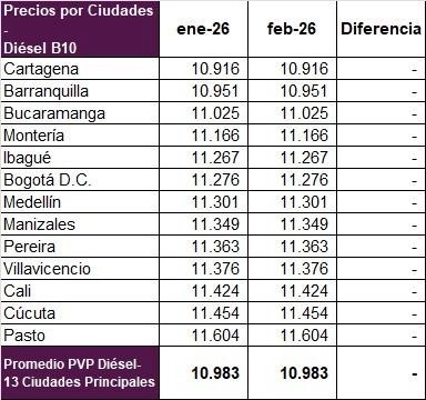Desde el primero de febrero, la reducción de $500 por galón de gasolina se materializa y se aplica de manera homogénea en las ciudades del país, con precios más favorables para los consumidores, mientras se mantiene estable el precio del diésel, como se observa en las siguientes gráficas: