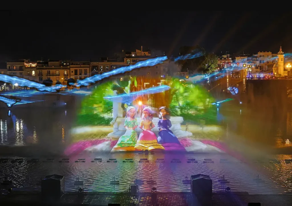 Se trata de la tercera edición del ‘mapping’ del río Guadalquivir, que desde el Muelle de la Sal proyecta sobre la zapata de la calle Betis una muestra de luces salteada con fuentes y hasta lanzallamas, siguiendo la estela de ‘La magia está en el río’, en 2023, y ‘Al rescate de la Navidad’, en 2024.