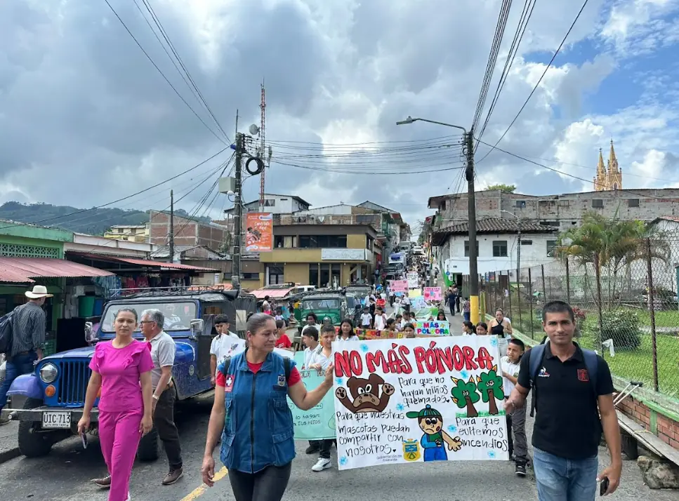 Líderes comunales, funcionarios públicos, estudiantes, padres de familia y autoridades de los municipios de Risaralda marcharon para rechazar el uso y la venta de pólvora durante las festividades de diciembre.