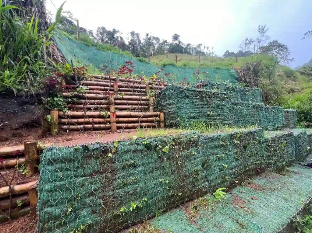 Ante este panorama, la CARDER y la administración municipal emprendieron la búsqueda de soluciones, encontrando en SINDERRUMBE un aliado estratégico que implementa alternativas basadas en la naturaleza. A través de procesos de capacitación, los habitantes de la vereda La Convención participaron activamente en la ejecución de obras que permitieron estabilizar el terreno, al tiempo que adquirieron conocimientos para identificar posibles riesgos como movimientos en masa, cárcavas u otros fenómenos que puedan afectar la estabilidad del suelo.