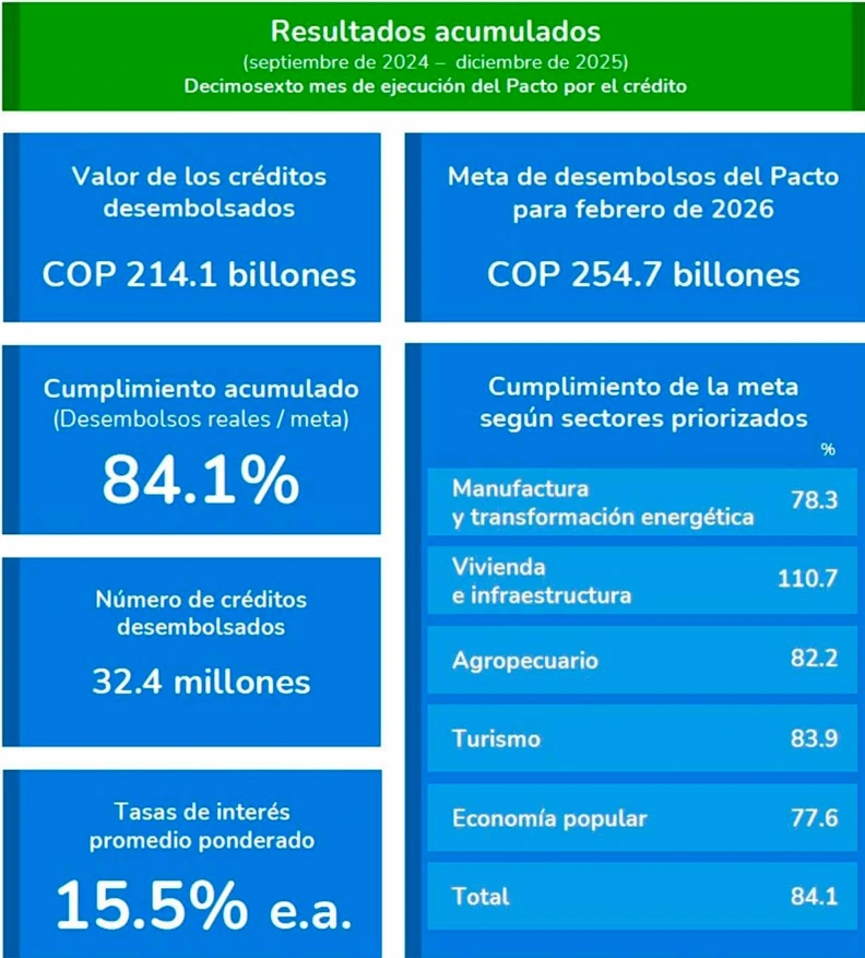 Pacto por el Crédito cerró diciembre de 2025 con 84,1% de ejecución con desembolsos por $254 billones