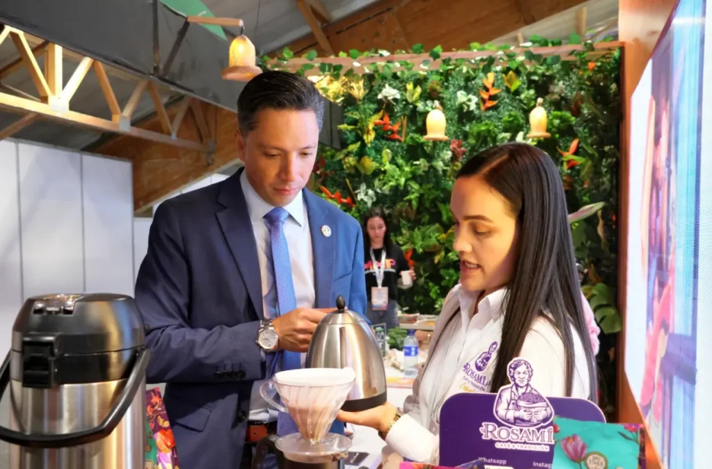 Más que mostrar el café como un producto, el stand lo presenta como el hilo conductor de una ciudad estratégica, diversa y preparada para el turismo internacional.