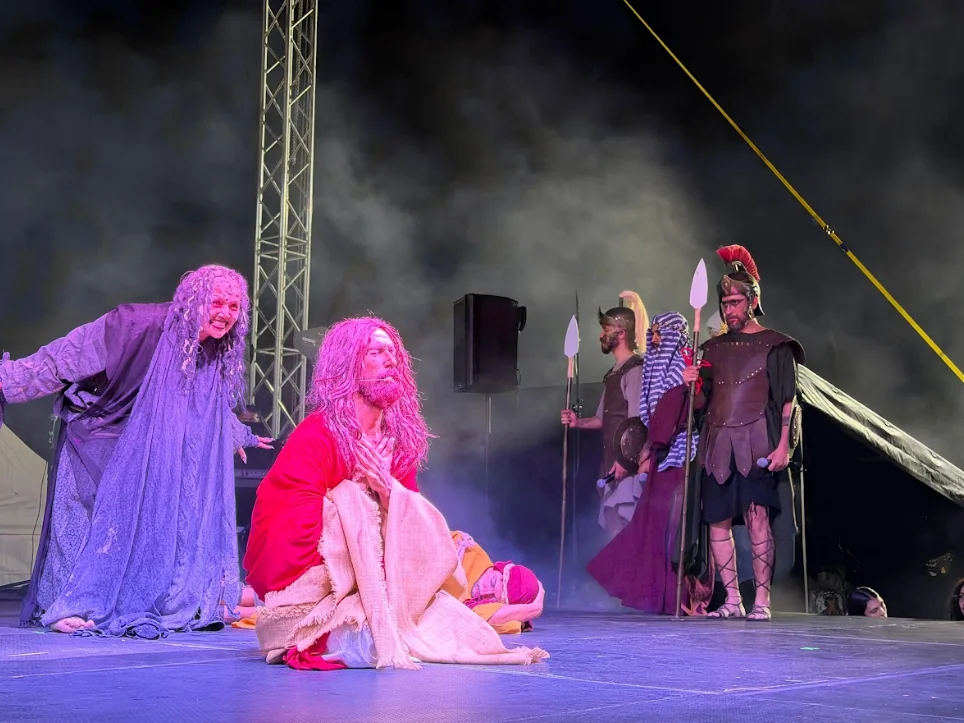 Posteriormente, la jornada continuó con la obra teatral “Amor y Salvación: el Camino de la Cruz”, una puesta en escena cargada de simbolismo que conmovió a los asistentes al revivir los momentos de la pasión y muerte de Jesucristo.