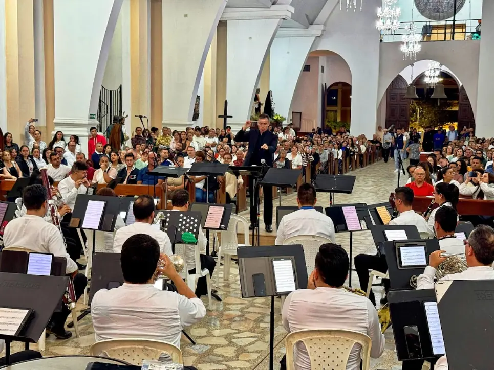 A esta agenda también se sumó la participación de la Banda Sinfónica de Pereira como invitada especial en el Tercer Encuentro Sinfónico de Música Sacra realizado en el municipio de Anserma, Caldas. Allí, la agrupación ofreció un concierto que integró repertorios religiosos y la participación de solistas líricos invitados, generando una experiencia musical que conectó al público con la espiritualidad propia de la Semana Mayor.