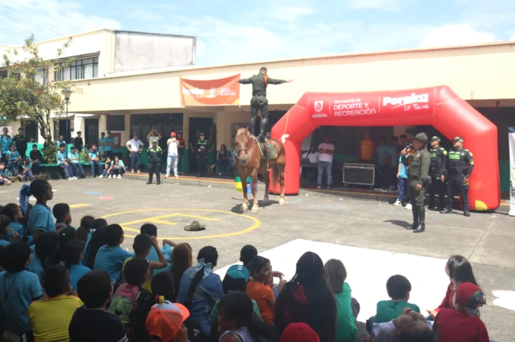 Durante la jornada, se realizaron actividades deportivas, lúdicas, de esparcimiento y formación en valores. Además, los jóvenes pudieron compartir una experiencia especial con la presencia de un caballo de la Escuela de Carabineros de Pereira, que se convirtió en un símbolo de aprendizaje sobre el respeto por los seres vivos y la sana convivencia.