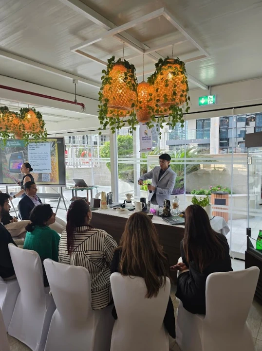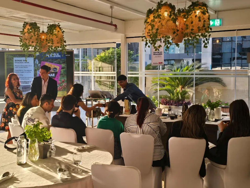 El evento reunió a empresarios, compradores, importadores, representantes diplomáticos y miembros de la comunidad latinoamericana en Dubái, en una jornada que combinó showroom de productos, una experiencia sensorial de cafés especiales y una sesión de networking comercial orientada a abrir rutas de negocio para las empresas risaraldenses.