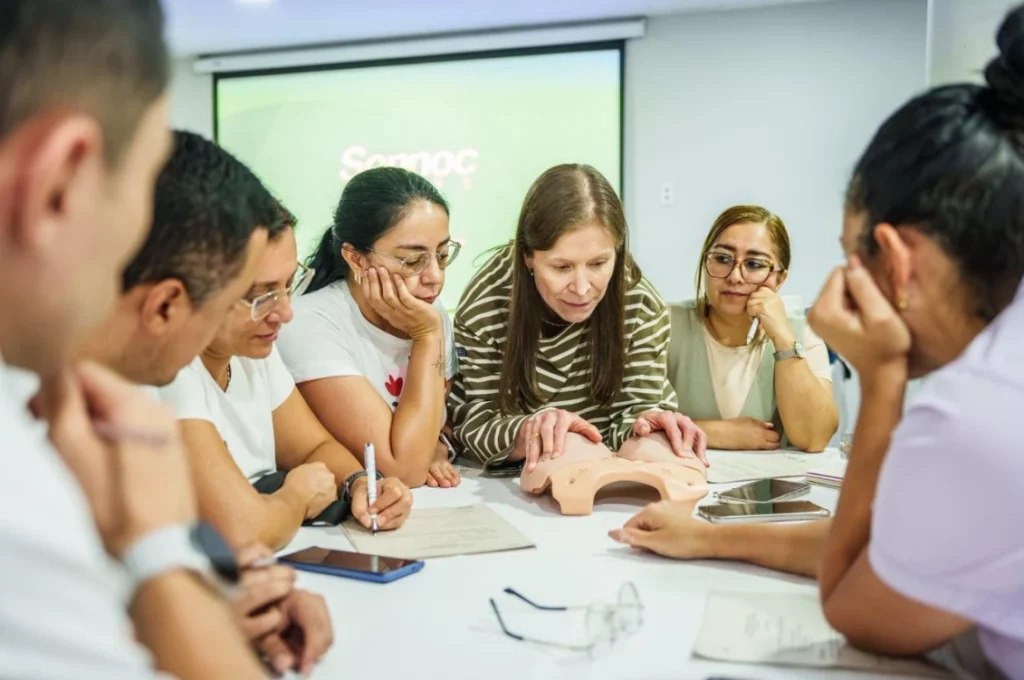 Con el propósito de fortalecer las competencias del personal de salud en la detección oportuna y el abordaje integral del cáncer de mama, la Secretaría de Salud de Risaralda, en articulación con el Instituto Nacional de Cancerología y el laboratorio Roche, realizó los días 12 y 13 de noviembre el Taller práctico sobre examen clínico de mama y manejo de equipos de diagnóstico y tratamiento de esta enfermedad.