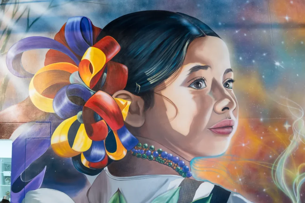 El mural muestra a una niña campesina en gran formato que representa la sencillez y la nobleza, valores esenciales que hacen parte de la identidad cultural.