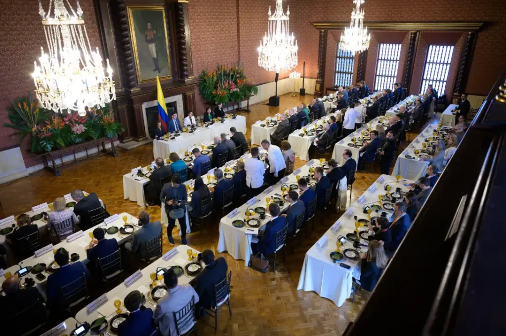 La ministra de Relaciones Exteriores, Laura Sarabia, adelantó un desayuno de trabajo con los miembros del cuerpo diplomático acreditado en el país, dentro de las instalaciones del Palacio de San Carlos. La reunión fue la oportunidad para presentarse ante los embajadores, encargados de funciones y representantes de organizaciones y misiones que se encuentran actualmente en Colombia, al tiempo de mostrar la línea de trabajo de los próximos 17 meses en materia de política exterior colombiana.