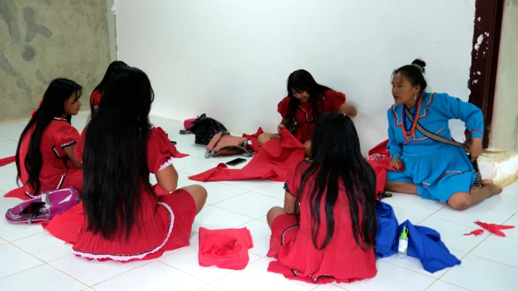 Allí, el aprendizaje va más allá de los libros y las fórmulas. Las niñas de esta institución, con aguja en mano y el alma llena de orgullo, confeccionan sus propios uniformes escolares. Estas prendas no son simples piezas de vestir: son obras de arte cargadas de simbolismo, colores y formas que narran la esencia misma de la cultura Embera.