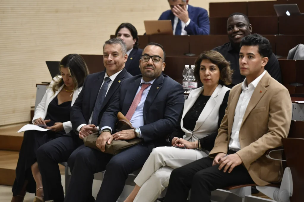 El evento, organizado por la Embajada de Colombia ante la Santa Sede con motivo de los 190 años de relaciones diplomáticas entre Colombia y la Santa Sede, se celebró en el Aula Magna de la Pontificia Universidad Gregoriana, contó con la presencia del viceministro de Asuntos Multilaterales, Mauricio Jaramillo Jassir, en un panel que fue moderado por la Doctora Emilce Cuda, Secretaria de la Pontificia Comisión para América Latina, y la participación de académicos como María Adelaida Farah Quijano, Vicerrectora Académica de la Pontificia Universidad Javeriana de Colombia, y el P. Adelson Araújo dos Santos, profesor de la Gregoriana.