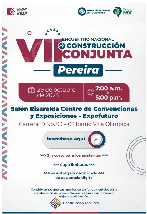 La Superintendencia de Sociedades se complace en extenderle una cordial invitación para participar en el “VII Encuentro Nacional de Construcción Conjunta-Eje cafetero”.
